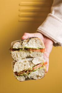 But for now, bagels are top of mind for Megan as she hands one, topped with cream cheese, seasoned avocado and tomato slices, to a hungry patron. “It changes day-to-day,” she says, when asked her favorite. “Lately, I’m loving the honey wheat paired with the sun-dried tomato spread. I don’t even toast it. I just eat it like a barbarian.” She laughs, but it’s understandable, as all the bagels, spreads and bagel sandwiches sound amazing.