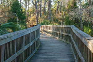 Part of the Muddy Creek Wetlands Management Area, the Muddy Creek Interpretive Trail offers a hike that is both fun and informative. With boardwalks crossing over streams and marshy areas, this loop trail is easily navigable. Markers throughout the trail offer insight into the flora and fauna of the rich, pine grove environment. It’s well-maintained, shady, relatively level and is a good distance for children and pets.