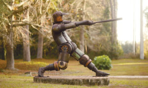 Poet John Keats was right: “A thing of beauty is a joy forever.” But so is scrap metal with the right touch. Fairhope artist Bruce Larsen has that touch. On the campus of the United States Sports Academy at One Academy Drive, Daphne, he has transformed junk into metallic masterpieces.