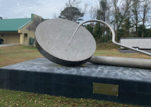 The monument, named “Piknmera” by the dentist, depicts a mirror about 8 feet in diameter and 16 feet long. Its 2006 dedication plaque reads: “To Honor the Visionaries-Faculty-Staff of the University of Alabama School of Dental Medicine,” in Birmingham. So why is it in Spanish Fort?