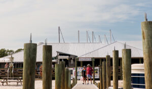 Pirate’s Cove feels otherworldly to many, but Kerry knows it intimately. She strolls the serpentine pier pathway past swimmers and a haggard old heron to the bar, her friends and Ashei in tow. Her determined movement through the sand past sunbathers and racing children is almost graceful, as if she can predict the other beachgoers’ every motion and see every obstacle on her course to the bartender. A voice calls to her from the dark interior of the restaurant. She doesn’t have to see their face — she knows the manager well. Kerry hugs the woman and introduces her sister and neighbor, and they discuss the Easter Sunrise Service Kerry missed at the Cove while dogs run past them through the dining room’s dogtrot. “It was so wonderful,” the manager reminiscences. “The sermon was exactly what I needed to hear. It’s kind of funny, though. Some people said they got to watch the sunrise come up right there through the skeleton’s ribcage. How about that?” Kerry chuckles, collects her bushwhackers and says a fond farewell. They’re only stopping by for a minute.