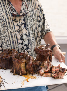 5. Allow rib crowns to rest for 15 minutes. Remove apples and skewers and cut the crowns into individual ribs.