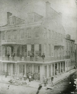 A newspaper ad from December of 1841 stated, “Lafayette House. The above hotel has been thoroughly and neatly repaired, and will be open tomorrow, under the management of its former proprietor, John O. Brackin.” Its address was given as “situated on Royal and St. Michael streets.”