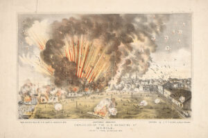 The 1865 Federal ammunition warehouse explosion in Mobile. Courtesy Wisconsin Historical Society
