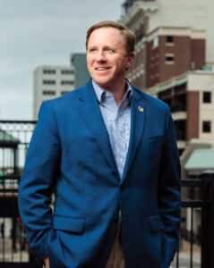 After graduating from McGill-Toolen Catholic High School in 1995, he made the short drive down Old Shell to study biomedical sciences and pre-medicine. At the time, Shell says, many of his classmates viewed South Alabama as “a consolation, the school you enrolled in if you didn’t get into your first choice or a school for people who got married and started their families. It was a commuter school. The average age of students was 27 or 28.” Nevertheless, when 18-year-old Jeb pledged Kappa Alpha fraternity, he realized just how erroneous those impressions had been. There, he found his place when he met a group of young men who saw a spark in him and encouraged him to get involved on campus. An athlete in high school, Jeb had never delved into student leadership beyond his role on a successful varsity soccer team. However, he found he had a knack for engaging in tough conversations with opposing groups, and he learned how to work through conflict. He credits those South relationships with fostering early leadership skills in him. “That started a big progression in me.”
