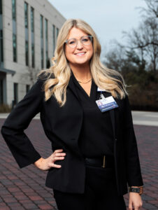 That fall, in 2004, she followed in her sister’s footsteps to Mobile, enrolling in the University of South Alabama to study nursing. Exceptional professors and mentors poured knowledge into her, encouraged her and inspired her to always keep a patient-centered focus. Since then, Fox has gone on to earn not one, not two, but three degrees as a Jag, including a doctorate in nursing practice. After completing her undergraduate studies, she worked for several years as a registered nurse before pursuing nurse practitioner school and specializing in pediatrics. She spent a brief stint in New Orleans, working with a high-risk youth population through Tulane University. While there, she realized that her heart was still in Alabama, and she returned to work in the USA Department of Pediatrics.