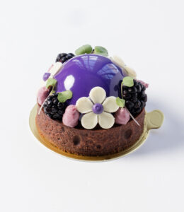 The ambience in the small kitchen is one of pleasant, positive energy, with the half-dozen staff members doing tasks in a focused manner. “I’m creating what I call ‘The Fruit of the Forest Tart,’” explains Rees. “It’s a dark chocolate and blackberry frangipane tart.” As she bends over the sheet of desserts, her steady hand squeezing out what she calls a ‘mirror glaze’ over mounds of blackberry mousse, she adds, “The glaze has to be cooled to 35 degrees [to look glossy].”