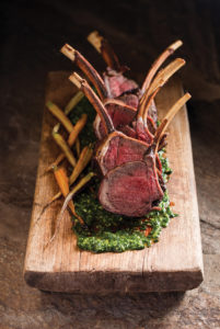 3. Sear in a large cast-iron pan, then finish in oven for 15 – 18 minutes, until medium rare. Allow to rest, then slice and serve with chimichurri. Serves 6