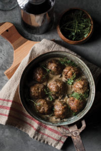 6. Serve in a pan with Sherry Mushroom Sauce (see below). Makes 24 – 30 meatballs