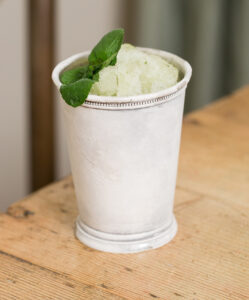 - Fill blender with ice. Add limeade, vodka and mint leaves. Blend until mint leaves are finely chopped. Serve in glasses garnished with fresh mint sprigs. Serves 4.