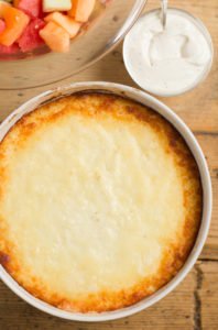 4. Bake for 30 – 35 minutes or until golden brown and no longer doughy in center. Let cool in the pan for 10 minutes. Invert onto serving plate and serve warm. Serves 10
